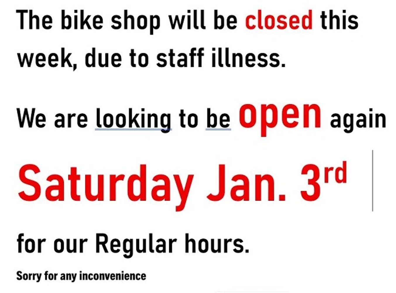 No used bikes will be available during the winter season